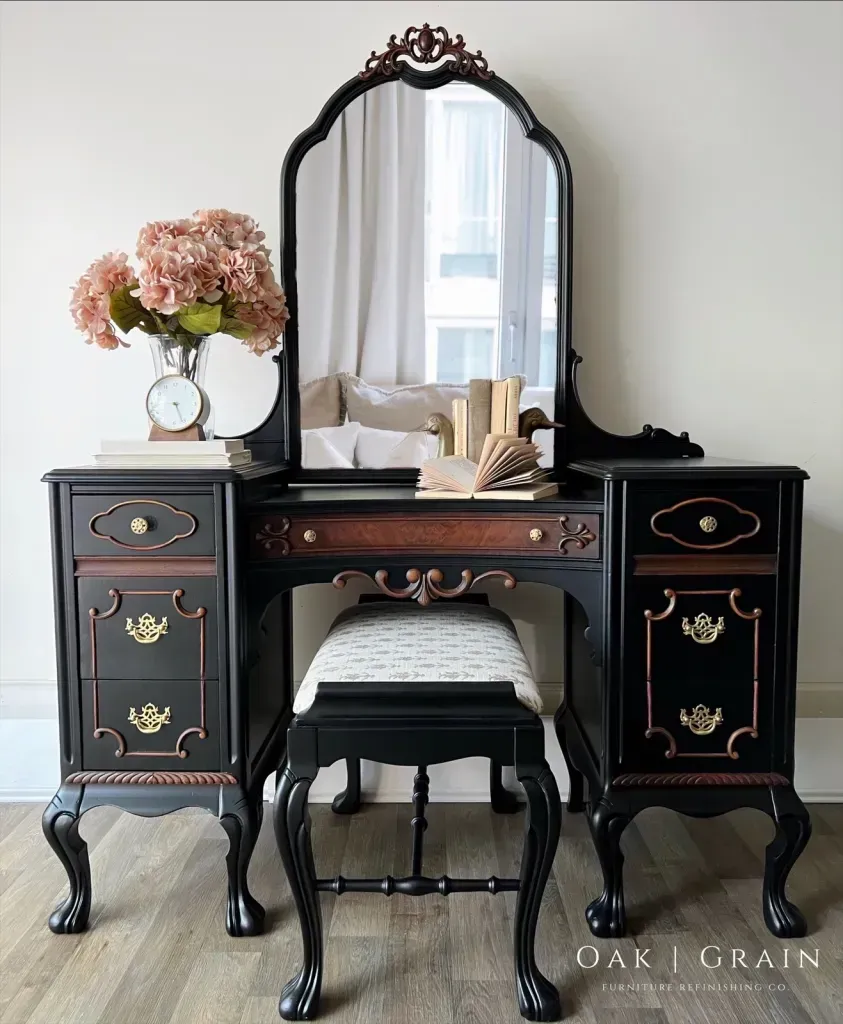 I breathe new life into forgotten treasures—restoring and refinishing each piece until it’s ready to shine again. Every curve, every finish, every drawer pull tells a story. These heirloom-quality creations are available both locally and online, waiting to become part of someone else’s home and history. Availably locally and online.